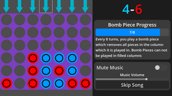 Connect 4 but every 8 turns you drop a bomb piece, destroying a column. Be careful which pieces you destroy!